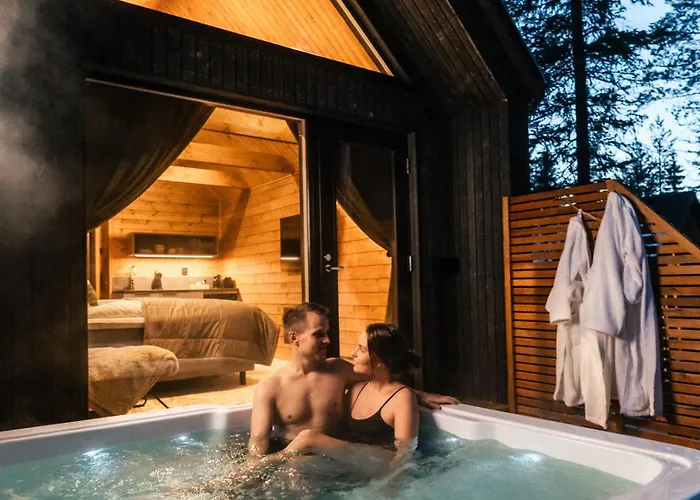 El Silencius Cabin With Private Jacuzzi Rovaniemi tiene una terraza y está situado a 4 km de Pohtimolampi. Con un jacuzzi, una bañera de hidromasaje y una sauna para una mayor relajación, este apartamento también ofrece acceso a un salón de spa.